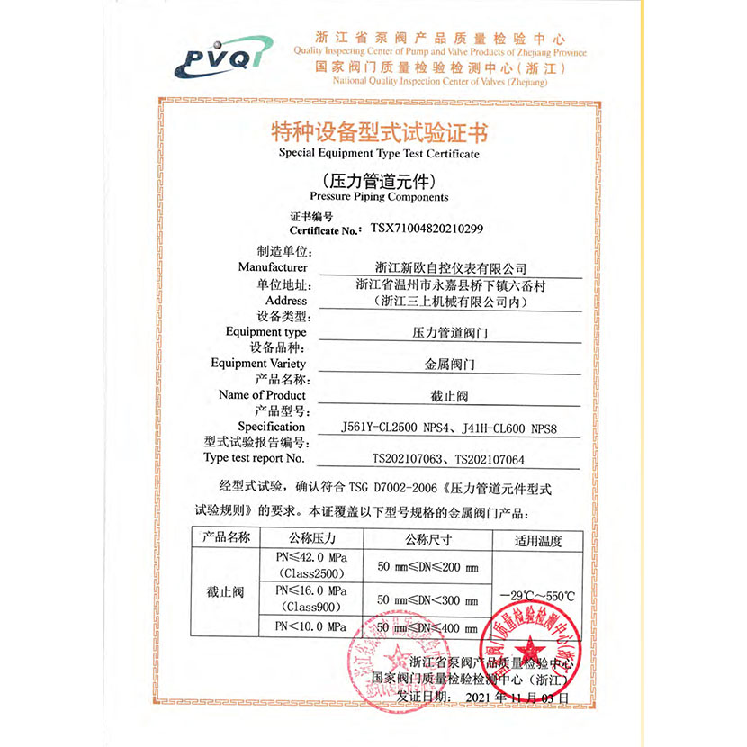 截止閥 型式試驗報告